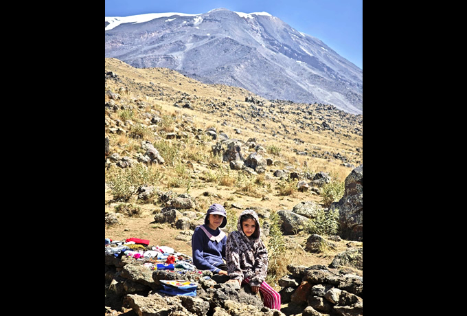 朝、専用車でアララト山南麓の登山口(2,200m)へ(約1.5時間)。 ●アララト登山1日目(約6時間) 登山口(2,200m)となる石積みの家が点在するクルド人の村を出発。夏の放牧地になっている草原を登り、広々した台地上に位置するベースキャンプ(3,200m)へ。 ベースキャンプ:テント泊 |