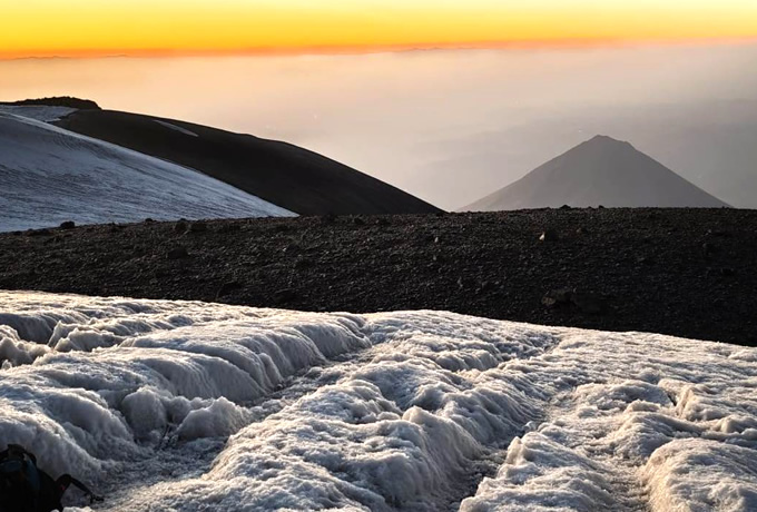 | 体力 | (+特殊技術)第2キャンプまでは歩きやすい道が続きますが、第2キャンプ~山頂間では、ガレ場の急登や傾斜の緩い雪面(氷河)のアイゼン歩行となります。登頂日は最大14時間に及ぶ高所登山になります。4,000m以上の高所登山・トレッキングのご経験、アイゼンを使用する雪山登山(4月~5月の残雪期でも可)のご経験、10時間以上の長い行動時間でも問題なく登ることができる方がご参加の対象となります。 | |