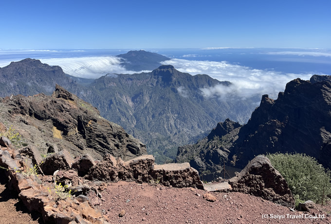 巨大なカルデラを中心とする国立公園。島の最高所ロケ・デ・ロス・ムチャチョス(2,426m)は天体観測所としても世界的に知られ、世界各国の天文台が設置されています。美しい景色の中で、ラ・パルマ島の自然を体感してください。