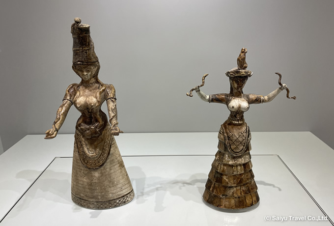 | 6 | クレタ島 | 終日、クレタ島の歴史に触れる遺跡を巡ります。午前、新しく2025年に世界遺産に登録されたヨーロッパ最古の文明とされるクノッソス宮殿のほか、イラクリオン考古学博物館ではミノア文明の各宮殿から発見された有名な円盤「ファイストスの円盤」や「蛇の女神像」をご覧いただきます。