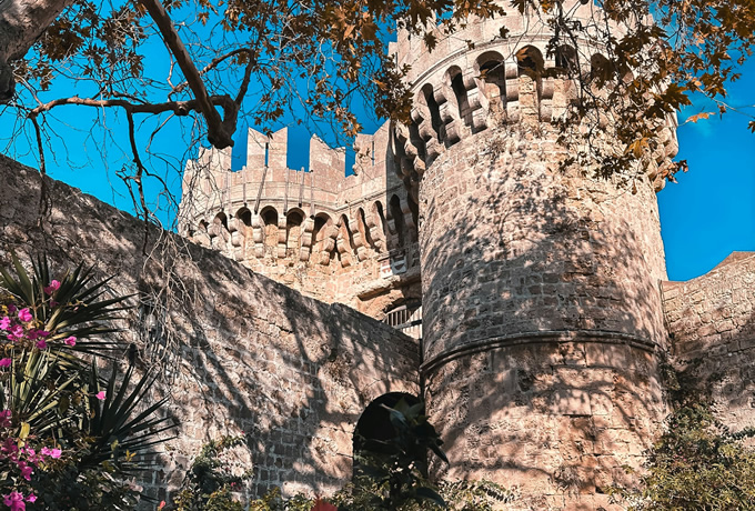 クレタ島を離れ、夜行フェリーで向かう先は、東方と西方が出会う島・ロードス島。世界遺産である旧市街は、14世紀に聖ヨハネ騎士団が築いた堅固な要塞都市。重厚な石造りの騎士団総長の館からは中世ベネチアの面影が漂いますが、一歩路地へ入れば、オスマン帝国時代のスレイマン・モスクやミナレットが顔を出し、異なる文化が層を成して重なっていることに気づきます。十字軍、ベネチア、そしてオスマントルコ。荒波に揉まれた騎士たちの夢の跡を、ドラマチックな船旅の終着地として訪ねます。