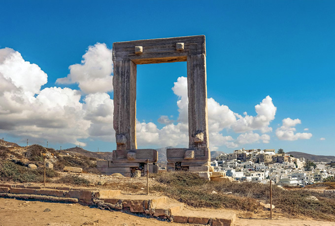 午前中、高速フェリーにてナクソス島へ向かいます。 昼食後、午後はナクソス島の中心地であるホラの旧市街を散策し、島のシンボルであるポルタラ(アポロ神殿の門)を訪れます。