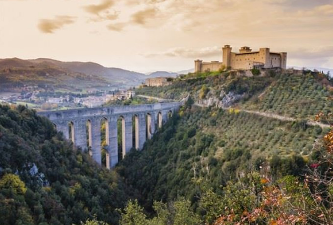 朝、専用車で考古学公園へ。エトルリアの広大な考古学遺跡であるモンテロッツィ墳墓群を訪問。その後、隣接するヴィテッレスキ宮殿にあるタルクイニエンセ国立考古学博物館を訪問し、墳墓群から発見されたエトルリア人の日常生活、宗教儀式、そして死生観を伝える鮮やかなフレスコ画で装飾された壁画コレクションをご覧いただきます。昼食後、専用車でスポレートへ。着後、大聖堂とローマ時代の水道橋の基礎を利用した塔の橋を訪問します。