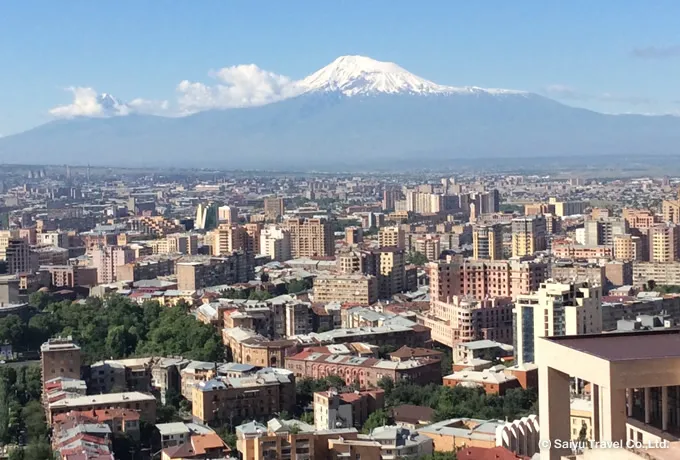 エレヴァン市内からアララト山を望む