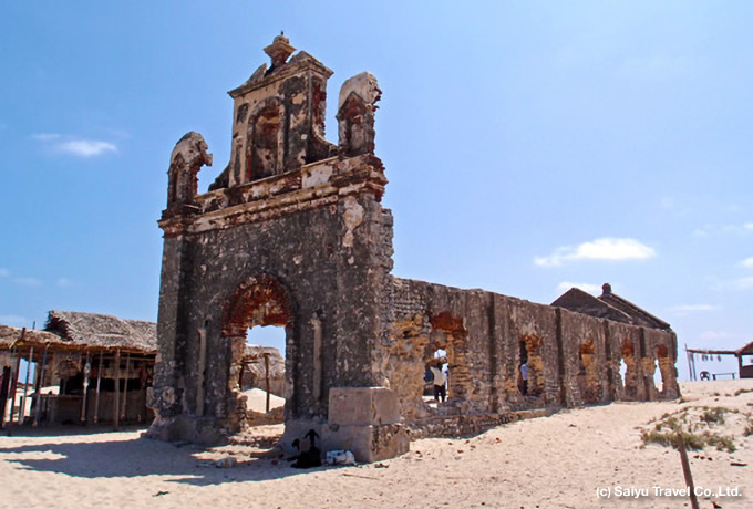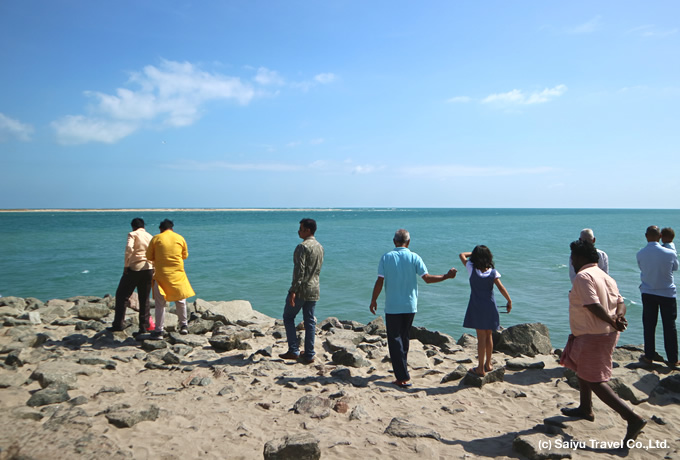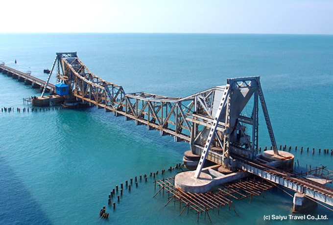 サントメ大聖堂タミル・ナードゥ州の南東端、マンナール湾に突き出た半島の先に位置するラーメーシュワラム。ヒンドゥー教四大聖地のひとつで、島は本土と道路橋・鉄道橋「パーンバン橋」でつながっています。町の中心には、精緻な彫刻と長い回廊で知られる「ラーマナータスワミ寺院」が建ち、多くの巡礼者を訪れます。寺院の東側に広がる「アグニ・ティールタム」と呼ばれる浜辺では、沐浴をして祈りを捧げる人々の姿や、水遊びをする人々でにぎわいます。この地は、インドの叙事詩「ラーマーヤナ」の舞台としても知られ、物語では、主人公ラーマ王子の妻シータが魔王ラーヴァナによって南方の島(現在のスリランカ)へ連れ去られ、ラーマが猿神ハヌマーンの助けを借りて、ここから海を渡り救出に向かいます。その際に渡ったとされる場所が、沖合に砂州と浅瀬が連なる地形の「アダムス・ブリッジ」とされています。また、かつてアダムス・ブリッジの近くには、ダヌシュコディという街が存在していましたが、1964年のサイクロンによって壊滅し、現在は廃墟のみが残されています。神話と歴史が折り重なるラーメーシュワラムには、海辺の開放的な空気のなかに、今も変わらぬ信仰が息づいています。